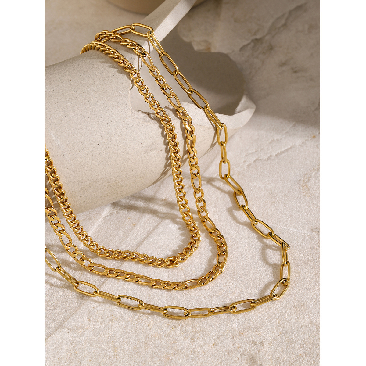 JDNW2403040 18K Gold Plated 3 in 1 Stainless Steel Chain Necklace Clip Paper Chain Necklace
