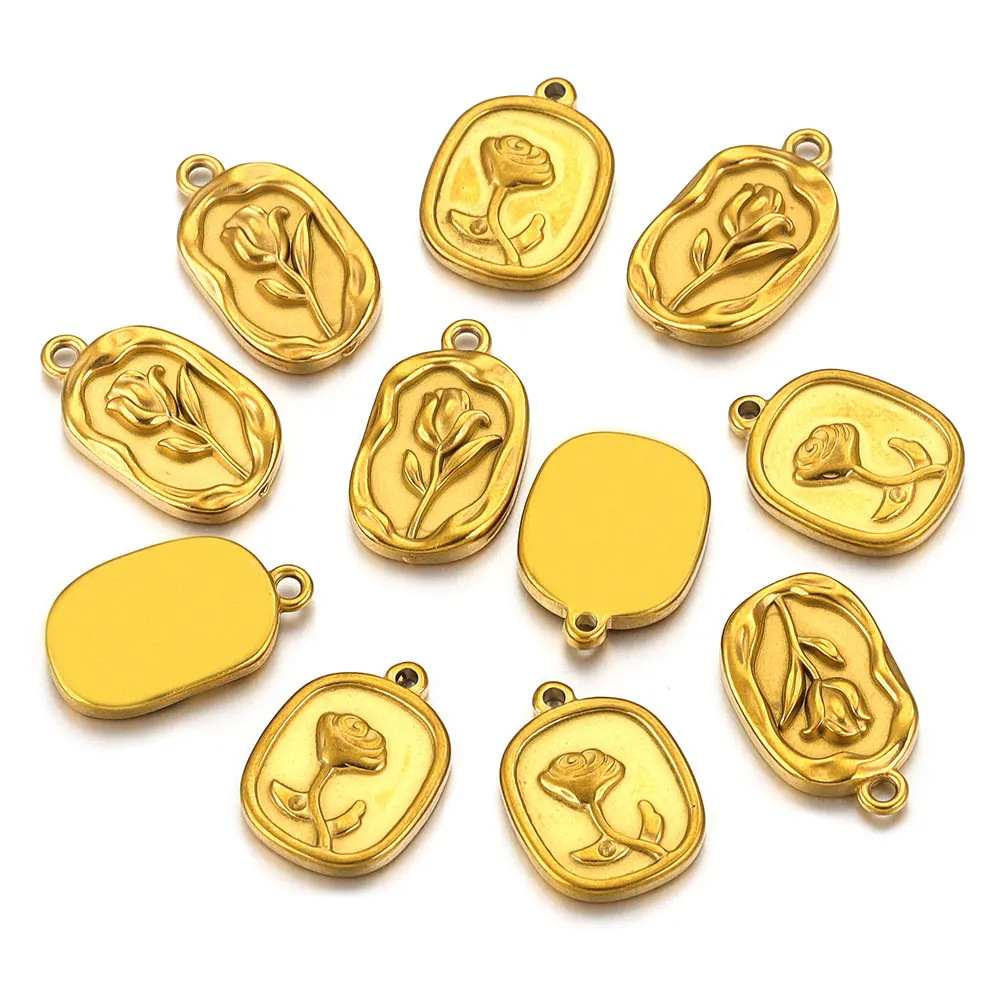 PD17 Flower Pendant Stainless Steel Rose Tulips Pendant for DIY Jewerly Charms Pendant