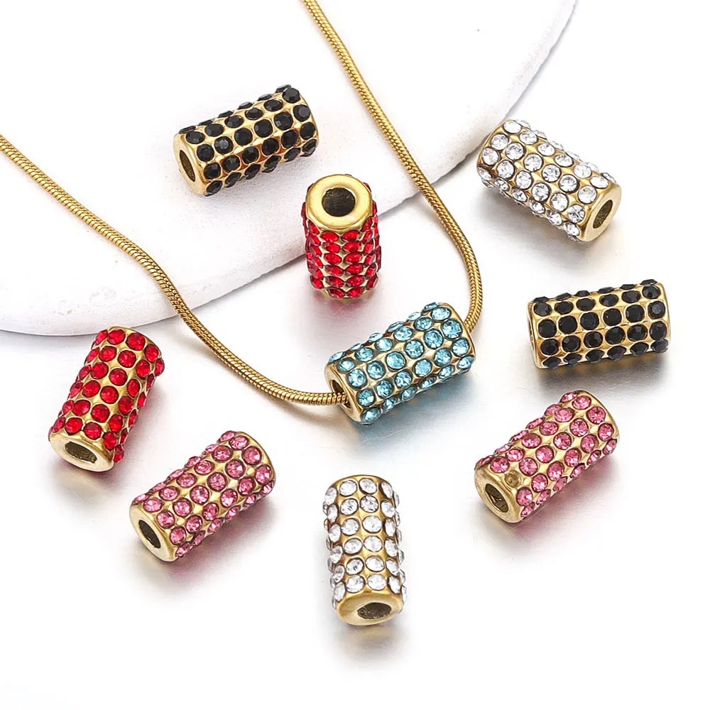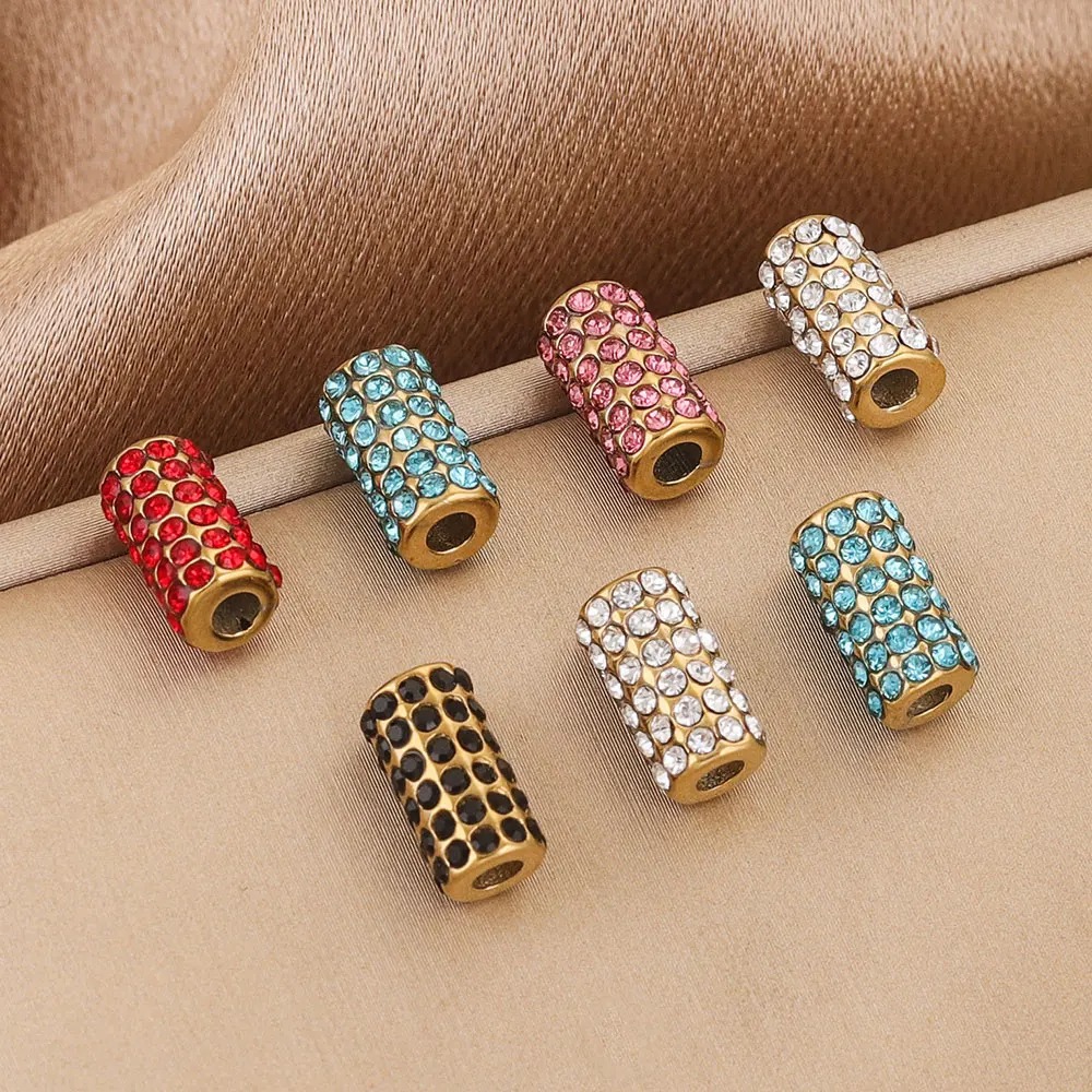 SPC61 Stainless Steel Zircon Spacers Charms Beads for DIY Bracelet Making